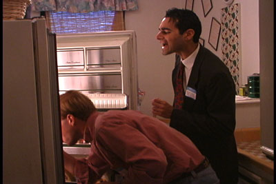 Devon singing a lullybye to Phil in exchange for the last piece of pie.