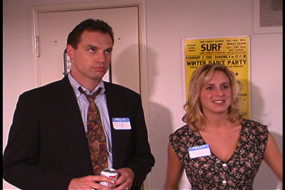 Jon thinking that that piece of pizza stuck to the ceiling would be mighty fine with his beer.