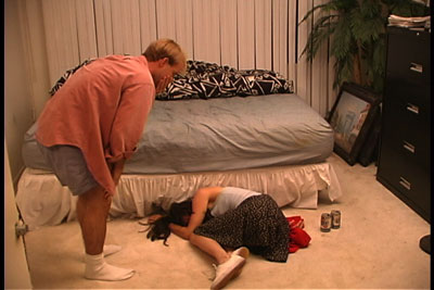 Phil wondering what to do after accidentally knocking Amy out with an upper-cut.
