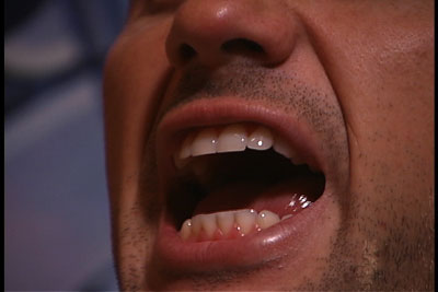 Scott trying to reflect light off his teeth to burn an ant alive.